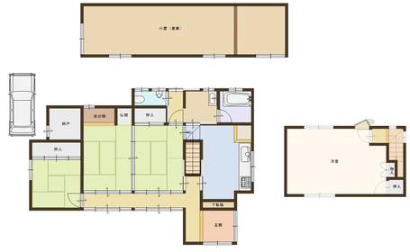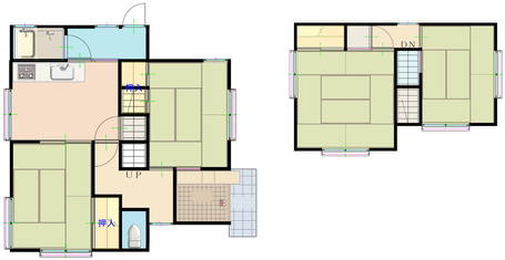 ●構造/木造スレート瓦葺2階建●床面積/1F58.74㎡・2F34.57㎡・延93.31㎡●間取り/4DK●築年月/昭和60年11月新築(平成30年内部改装)●設備/市上下水道・プロパン・関西電力●教育/余部小学校・城北中学校●交通/京都交通福来西バス停徒歩約10分●備考/間取図と現況に相違がある場合現況を優先・駐車場有●ペット相談可●引渡時期/相談●取引態様/仲介